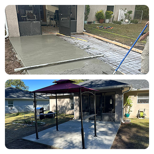 For this project, we prepared the ground, built a solid concrete slab with a smooth, level finish, and installed the metal gazebo structure, delivering a modern, durable, and ready-to-use patio.